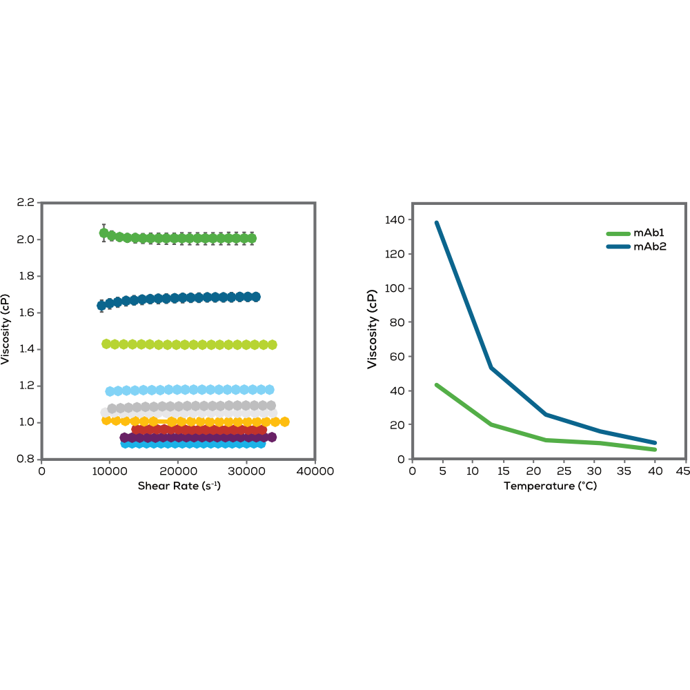 快速評估單株抗體 (mAb)、雙特異性抗體、融合蛋白等在不同濃度與配方條件下的黏度特性,優化可注射性 (injectability) 與穩定性。
