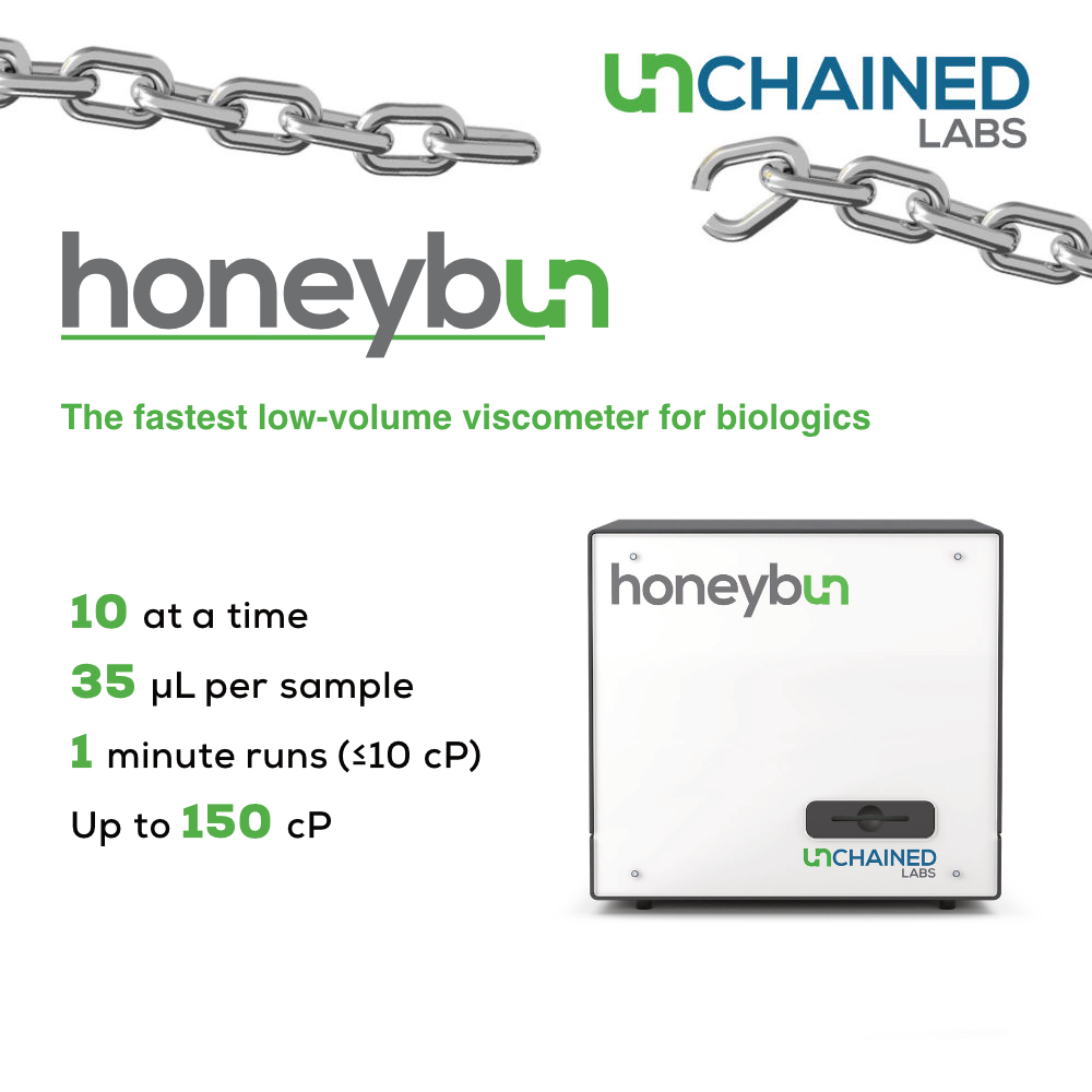 Honeybun represents a breakthrough in viscosity measurement technology for biopharmaceutical development. This microfluidic viscosity system delivers unprecedented speed and throughput while minimizing sample consumption, making it ideal for protein formulation, vaccine development, and biologics characterization.