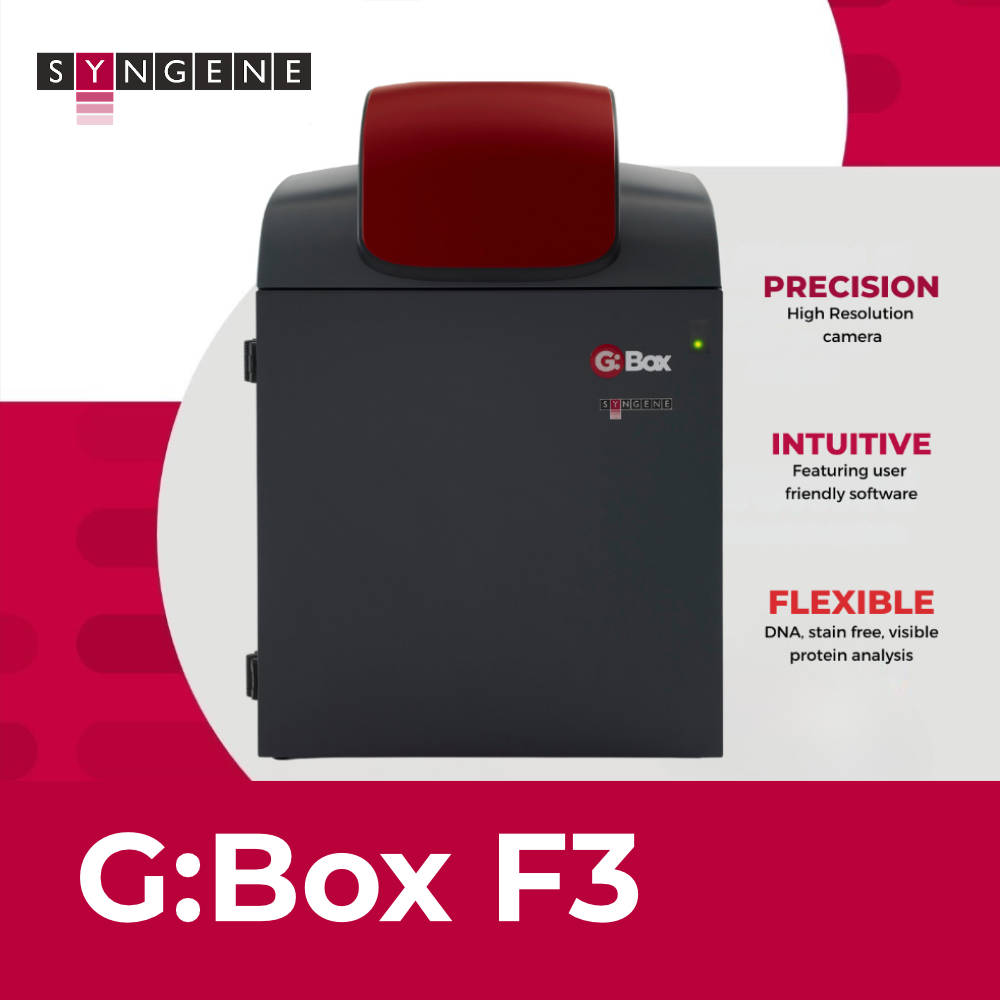 The G:Box F3 lfb (Lens Feedback) represents the flagship of Syngene's entry-level automated gel imaging systems, designed specifically for fluorescence and visible light applications. This sophisticated system combines a 5MP high-resolution CCD camera capable of 16-bit imaging with 65,535 grey scales, an F/1.2 motorized zoom lens, motorized filter wheel, and the proprietary Lens Feedback technology. The stylish modular darkroom accommodates gels up to 32 x 24 cm while maintaining a compact footprint. The Lens Feedback feature allows users to save complete imaging protocols including zoom position, focus distance, aperture settings, filter selection, and exposure times, enabling perfect reproducibility of previous imaging conditions with a single click - invaluable for standardized workflows and multi-user laboratories. Controlled by GeneSys application-driven software with a database containing hundreds of dye and application protocols, the G:Box F3 lfb automates the entire imaging process: users simply specify the sample type and dye, and the system automatically selects optimal lighting, filters, and camera settings. Multiple internal lighting options include UV transilluminators for ethidium bromide DNA gels, UV-to-blue light converter screens for SYBR Safe and GelGreen safe dyes, UV-to-visible converter screens for Coomassie Blue protein gels, and blue LED transilluminators, plus overhead white LED lighting for sample positioning. The integrated QuickQuant feature in GeneSys software enables immediate quantification of protein and DNA bands at the point of capture, while GeneTools software provides comprehensive offline analysis including band detection, molecular weight estimation, concentration quantification via standard curves, and multi-fluorescence analysis of up to 5 samples simultaneously. Both GeneSys and GeneTools meet 21 CFR Part 11 and GLP requirements with complete audit trails and electronic signatures for regulated environments. The system includes a 3-year warranty, unlimited GeneTools licenses, and biannual free software updates, ensuring long-term investment protection and access to the latest imaging protocols without additional licensing costs.