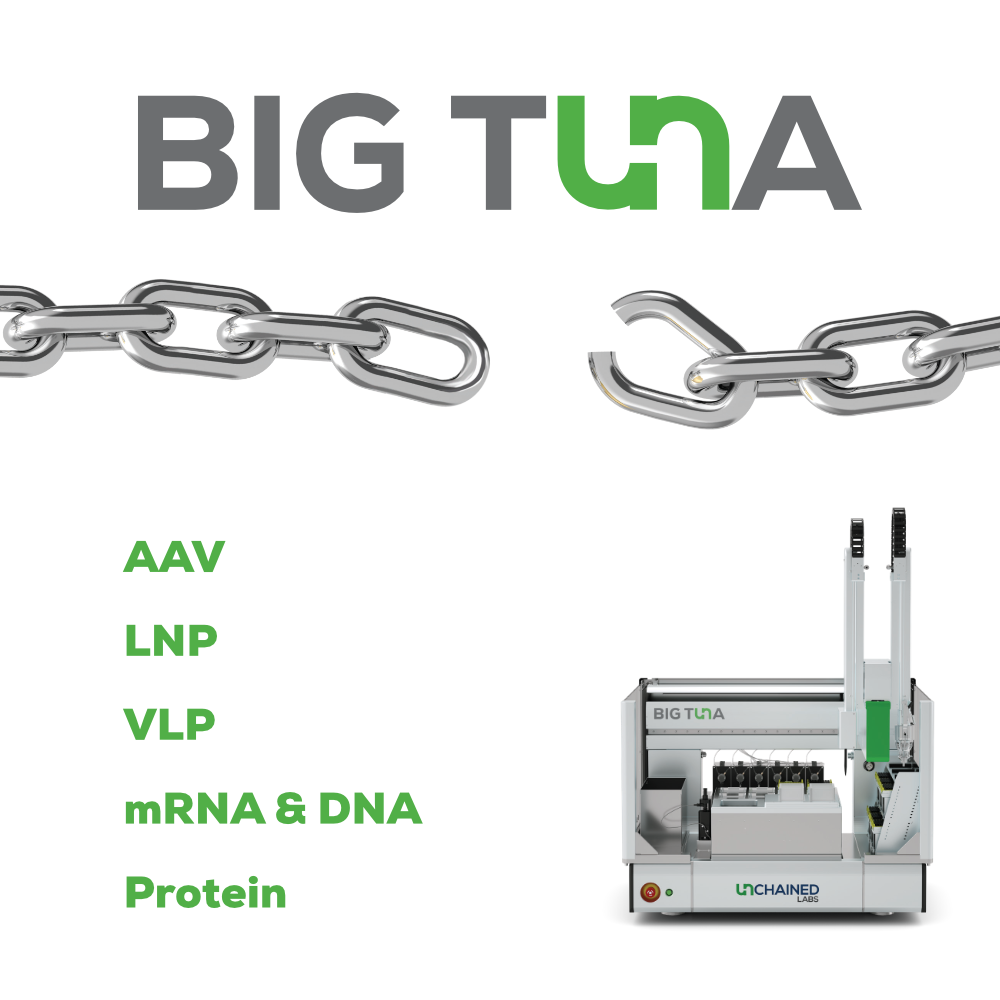 緩衝液交換與樣品濃縮是您在進行真正想做的實驗之前,必須處理的耗時人工雜務。Big Tuna 是一款全自動板式緩衝液交換平台,採用改良式 UF/DF 方法與溫和混合技術,能夠完成緩衝液交換、濃縮,以及清理蛋白質、核酸或基因治療載體(如 AAV 與 LNP)。