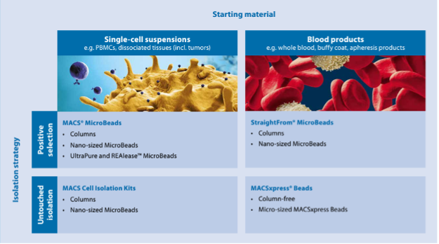 - Untouched cell isolation : MACS® Cell Isolation Kits