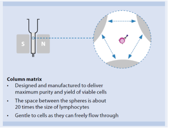 (細胞在柱內球體之間自由移動,唯有磁力能保留細胞, 圖3 MACS® Column)