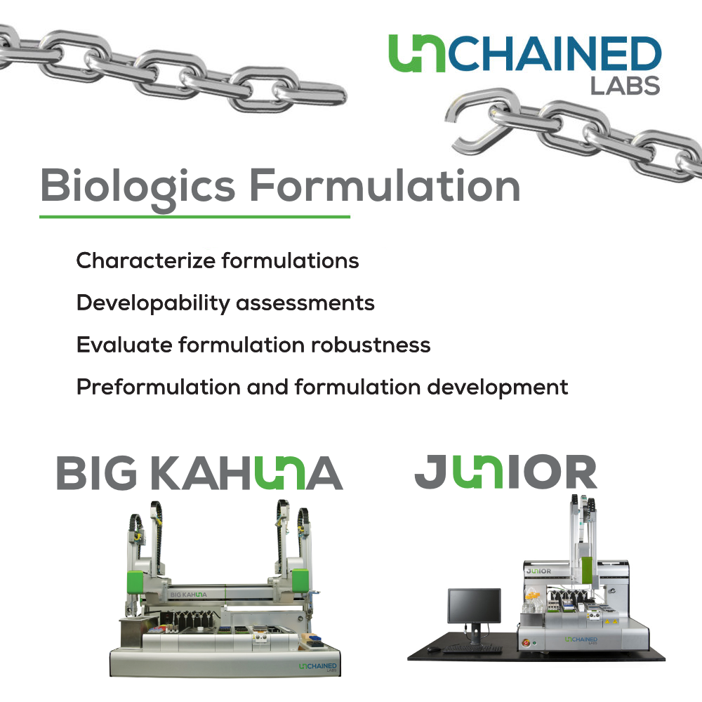 在生物製劑開發過程中,配方篩選與穩定性研究往往是最耗時的環節。傳統的手動操作方式不僅效率低落,更容易因人為誤差導致實驗結果不一致。Unchained Labs 開發的 Big Kahuna 與 Junior 自動化平台,專為解決生物製藥配方開發的瓶頸而設計。
