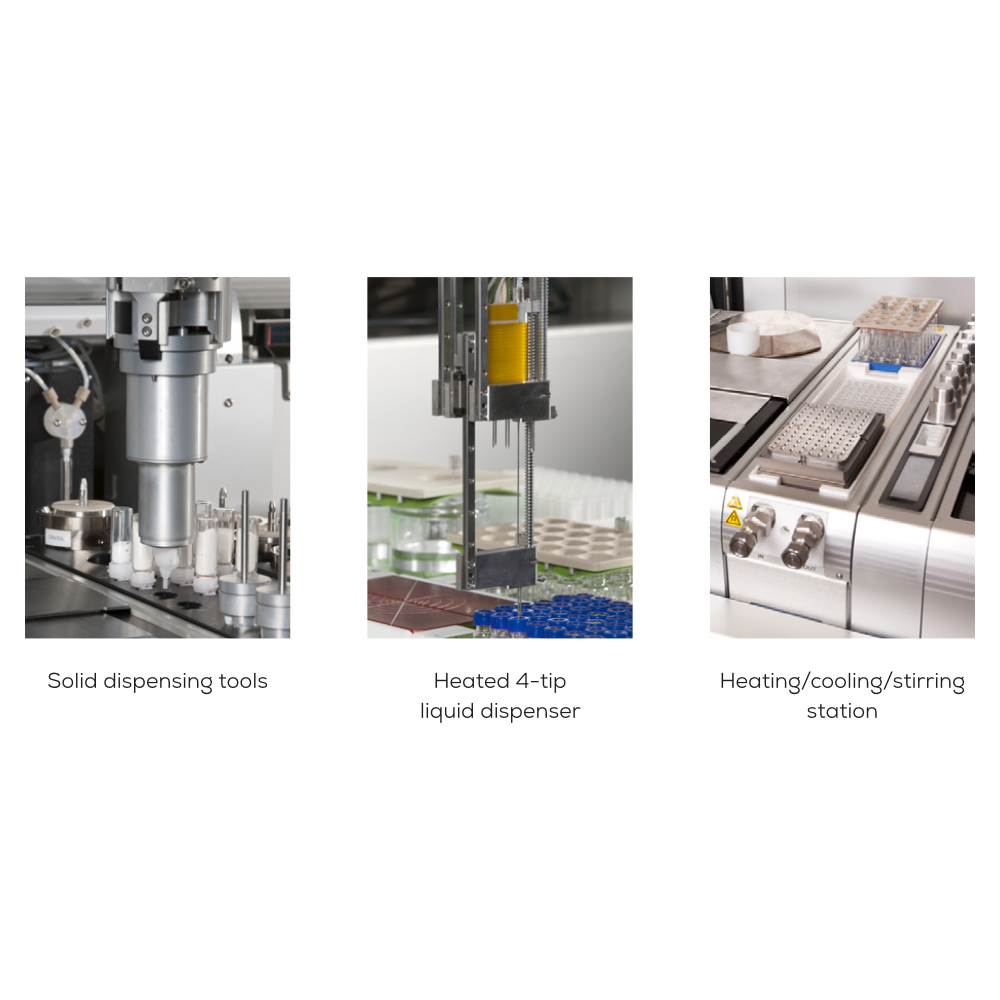 | Heating/Cooling/Stirring Station | -20 to 180 °C, up to 750 rpm | Available as option |